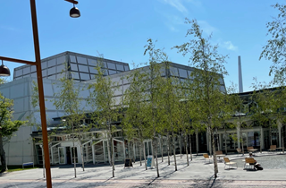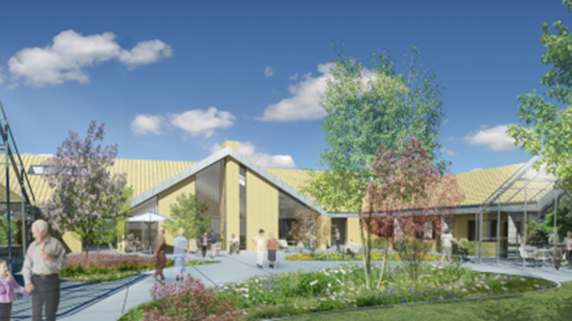 De fire bygningsafsnit er sammenkoblet via en ca. 1500 m² mellembygning indeholdende køkken, café, administration, genoptræning, værksteder m.v.