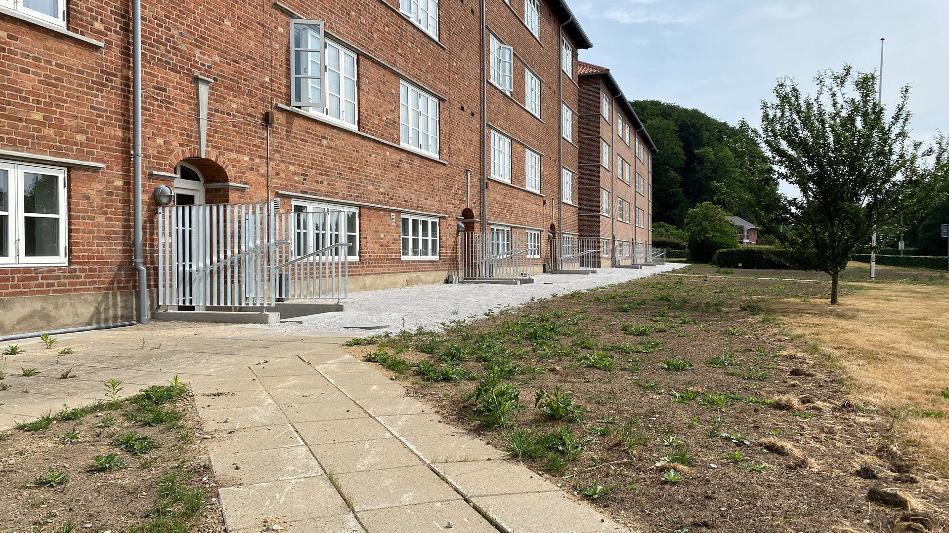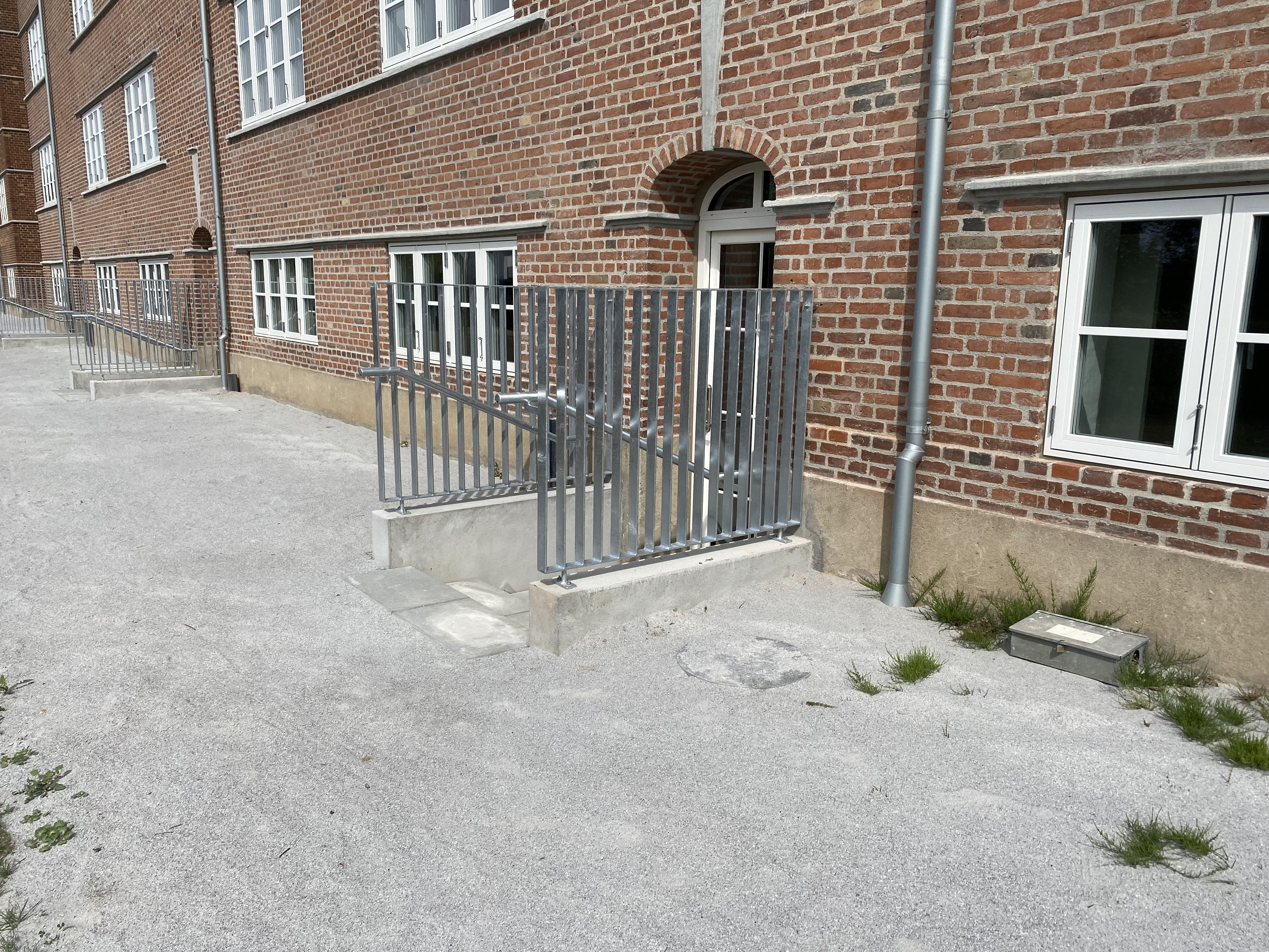 Der monteres nye vinduer/døre, nyt tag inkl. efterisolering, fuger/sålbænke/teglsten i facade eftergås, ligesom der monteres nye radiatorer i gavl-boliger.