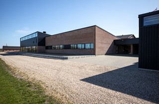 Nybygningen indeholder nye faciliteter til spisesal med tilhørende produktionskøkken samt foredragssal.