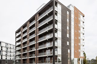 De 56 boliger incl. fællesadgangsarealer og erhvervslejemål i stueetagen er fordelt på en 8 etagers bygning. Herudover er der udført kælder med depotrum under halvdelen af byggeriet.