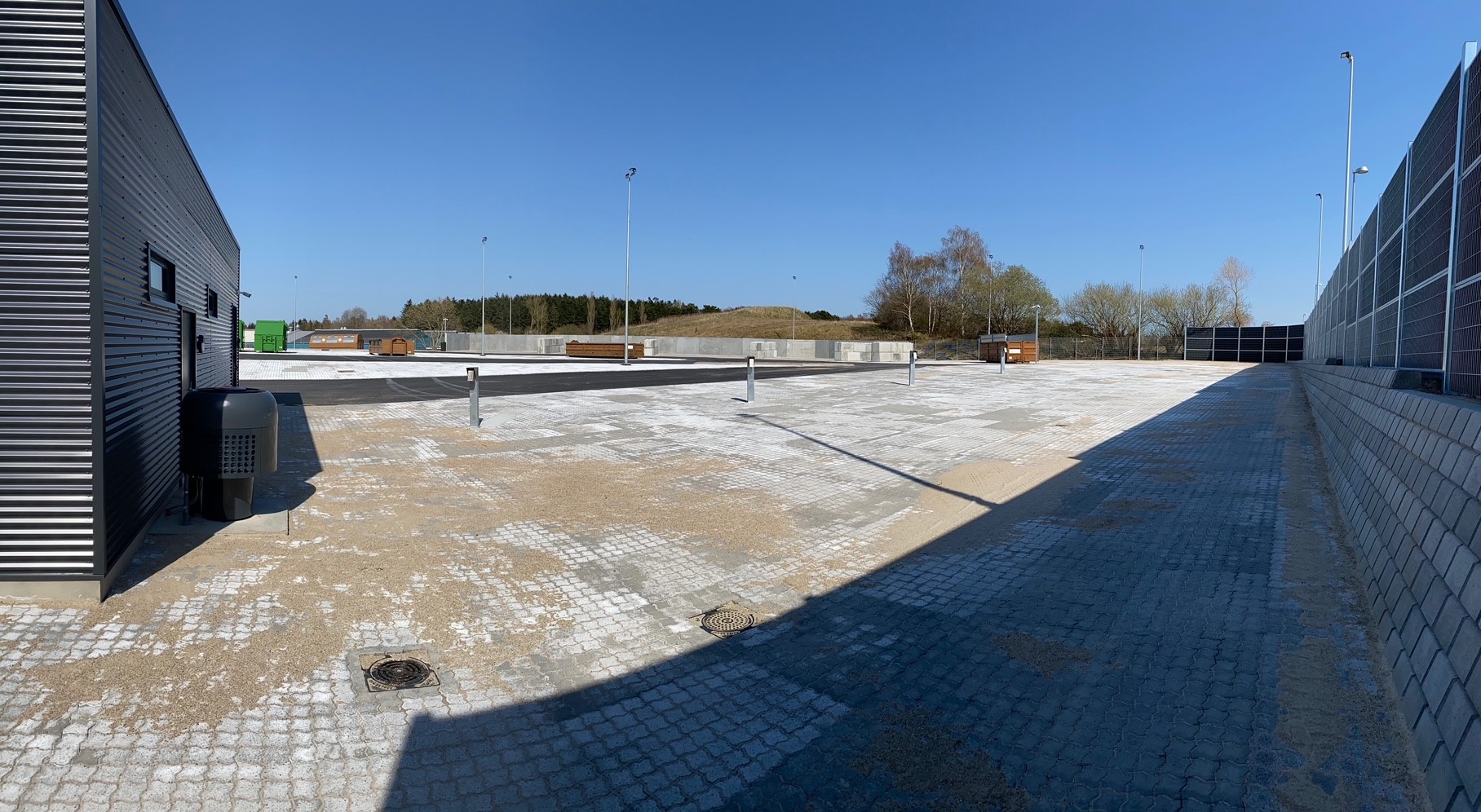 Byggeriet består af en genbrugsplads på ca. 11.000 m2 med en bygning på ca. 500 m2. Bygningen er delt op i en kold del til lager, garage og opbevaring af farligt affald samt en opvarmet del til mandskabsbygning. Genbrugspladsen er indrettet med et hævet areal som er for borgerne og med en sænket containergrav. Genbrugspladsen udføres med in situ støbte betonstøttevægge og -plader under flere containere.