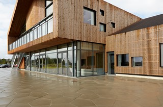 Byggeriet er specielt i forhold til, at alle facader og alle tagflader er beklædt med trælister. Tilsvarende er trælister et gennemgående tema inde i bygningen.