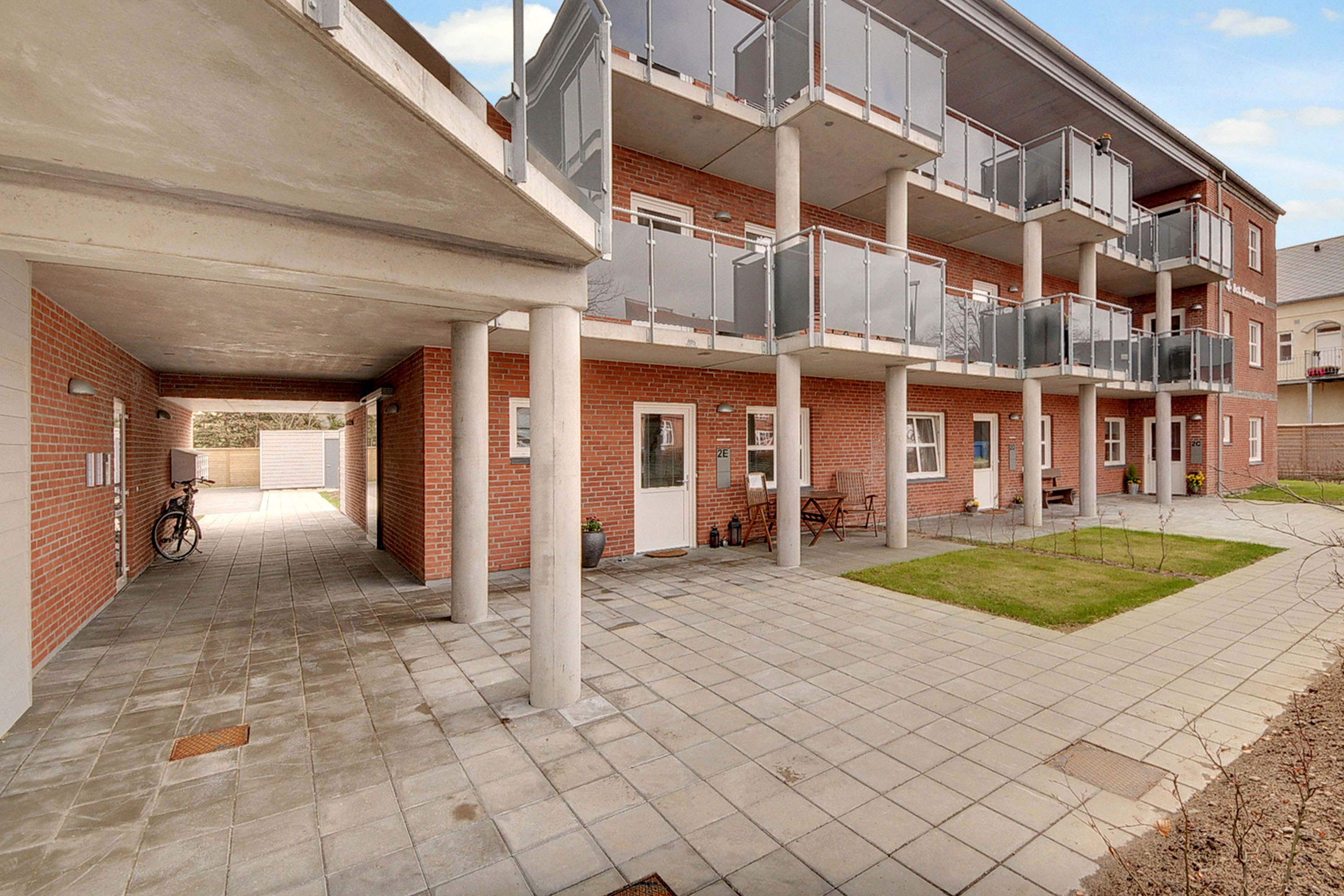 På en central grund midt i byen, hvor der tidligere har været hotel og restaurationslokaler, har Bramming Boligforening opført en etageejendom med lejeboliger.