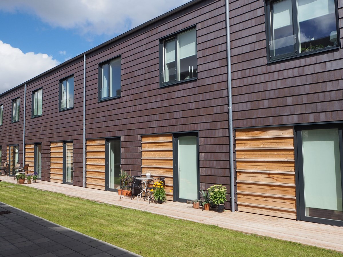 Projektet omfatter 39 stk. energi-0 boliger i 2 etager fordelt på 4 blokke.