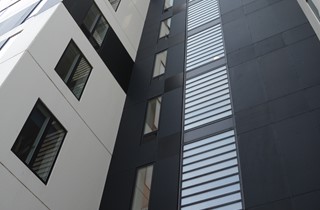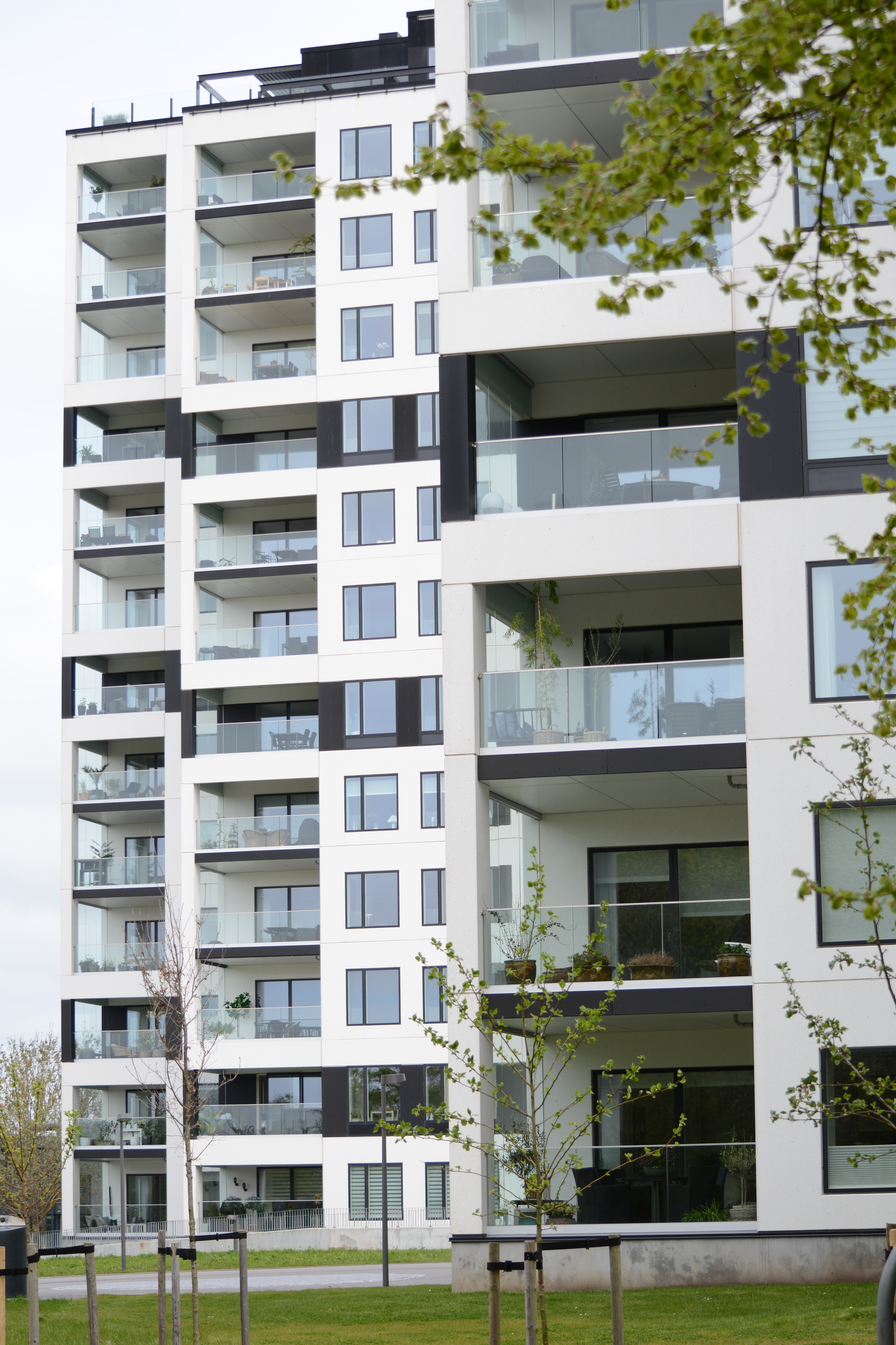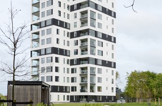 Byggeriet består af to punkthuse på henholdsvis 9 og 14 etager, der tilsammen indeholder 63 lejligheder.