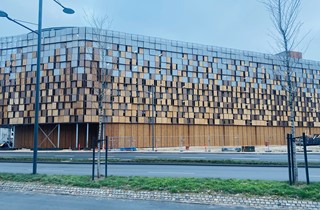 P-husets bæredygtige og grønne profil kommer til udtryk i valget af materialerne; træ og genbrugsaluminium, der giver facaden et levende spil, og som er valgt på baggrund af deres miljømæssige egenskaber og optimale ressourceudnyttelse.