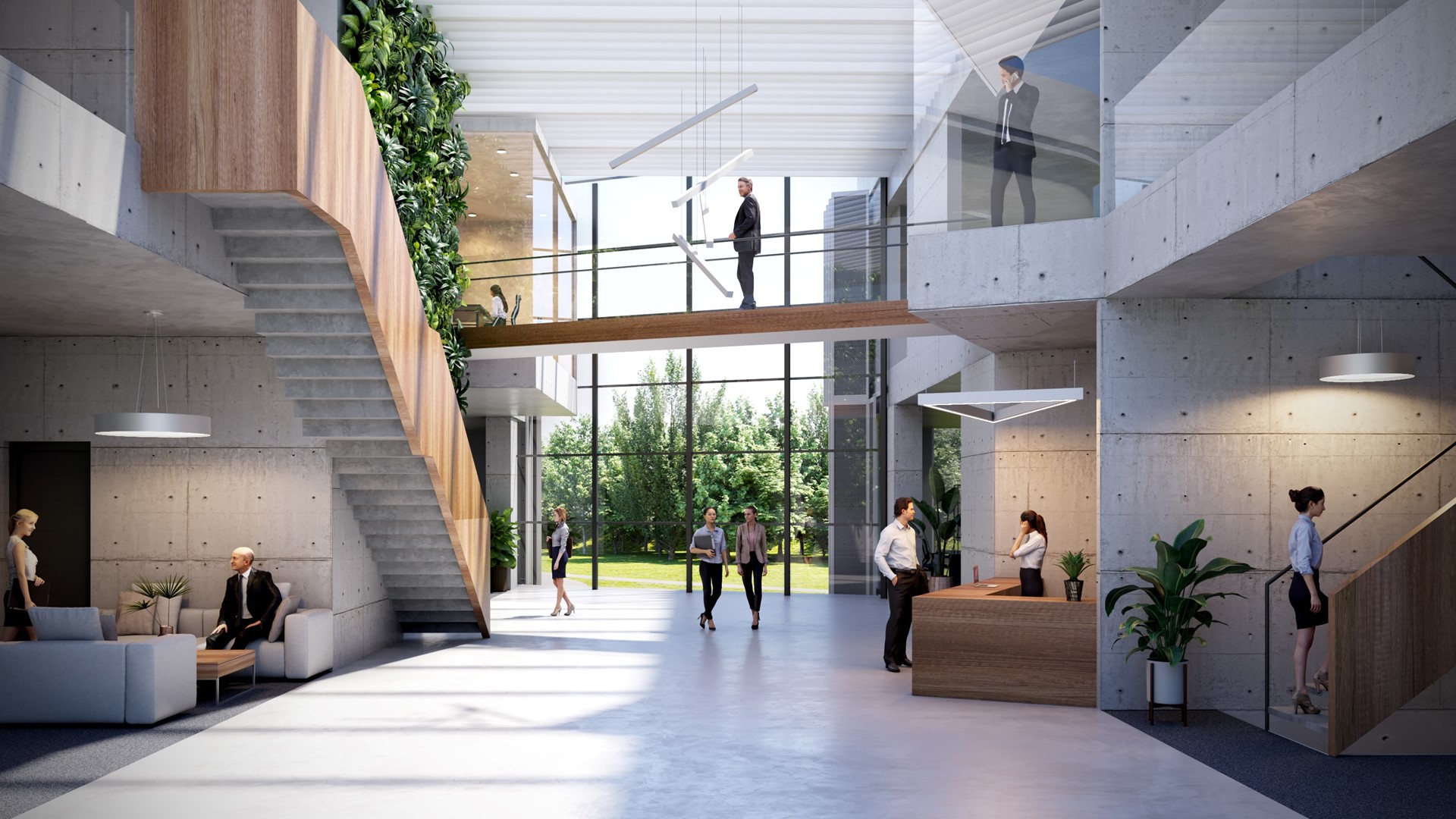 PolyTechs nye hovedkontor er opført som to huse, der bindes sammen af en stor, bred glasoverdækket atrium. Hver af de to bygningsdele indeholder to planer, som hver især indeholder et storrumskontor brudt af en indre funktionskerne. Storrumskontorerne er inddelt yderligere i siddegrupper af mindre afdelinger, hvor der bevidst er søgt en stil med fokus på arbejdsmiljø og med blik for samarbejde på tværs af alle faggrupper.