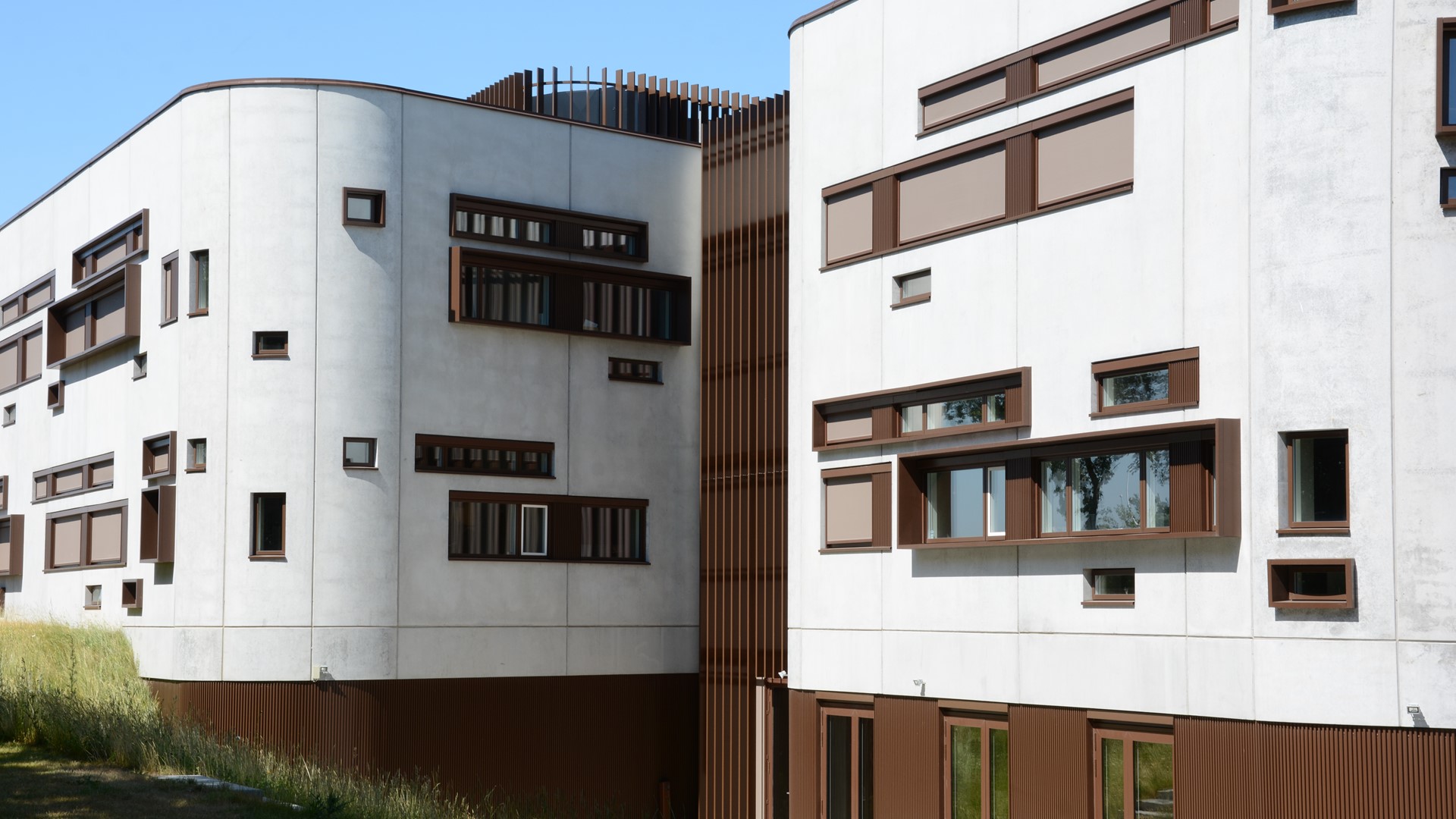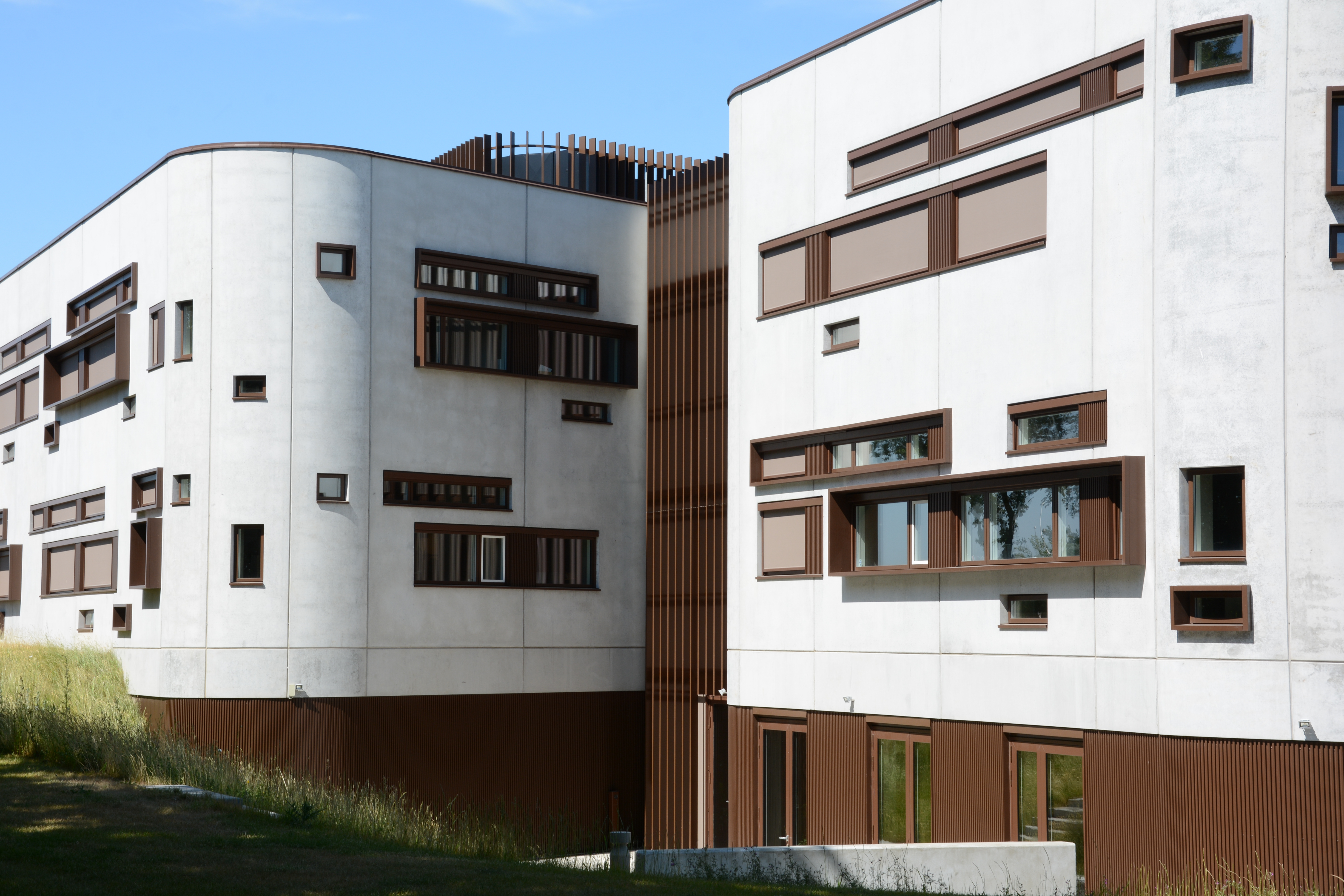 Domicilet er opført som elementbyggeri, hvilket giver et ensartet udseende til facaden. Der er tale om moderne arkitektur med runde hjørner og store vinduer fra gulv til loft. Byggeriet kommer til at fremstå i et råt look i beton, træ og glas.