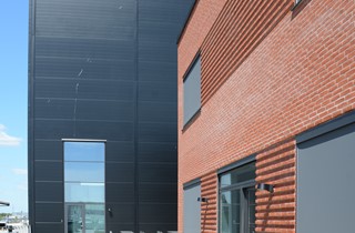 Indvendigt fremstår lokalerne med et råt look fra betonelementerne, hvor der med de synlige installationer bliver et gennemgående industrielt design.