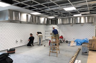 Det nye køkken blev etableret med eksisterende køkken og kantine på 1. sal i drift.