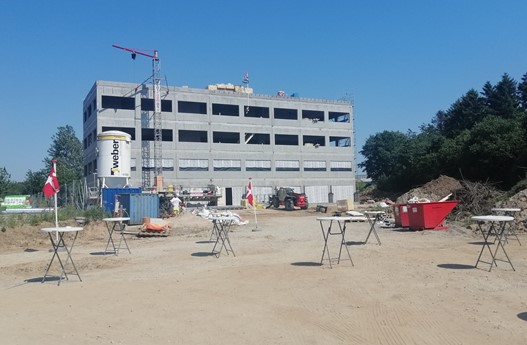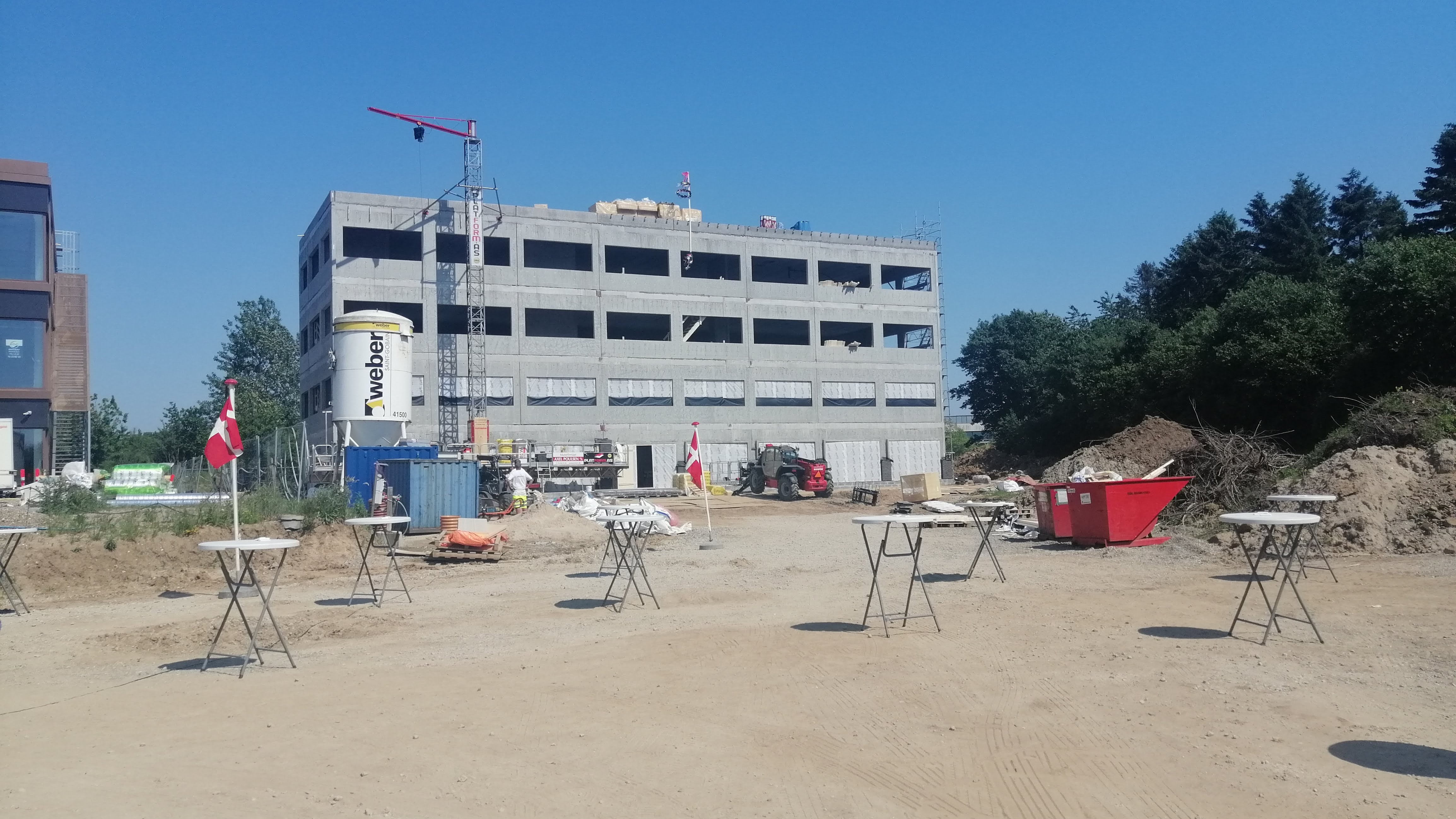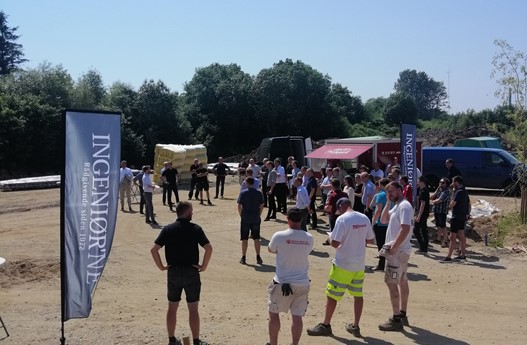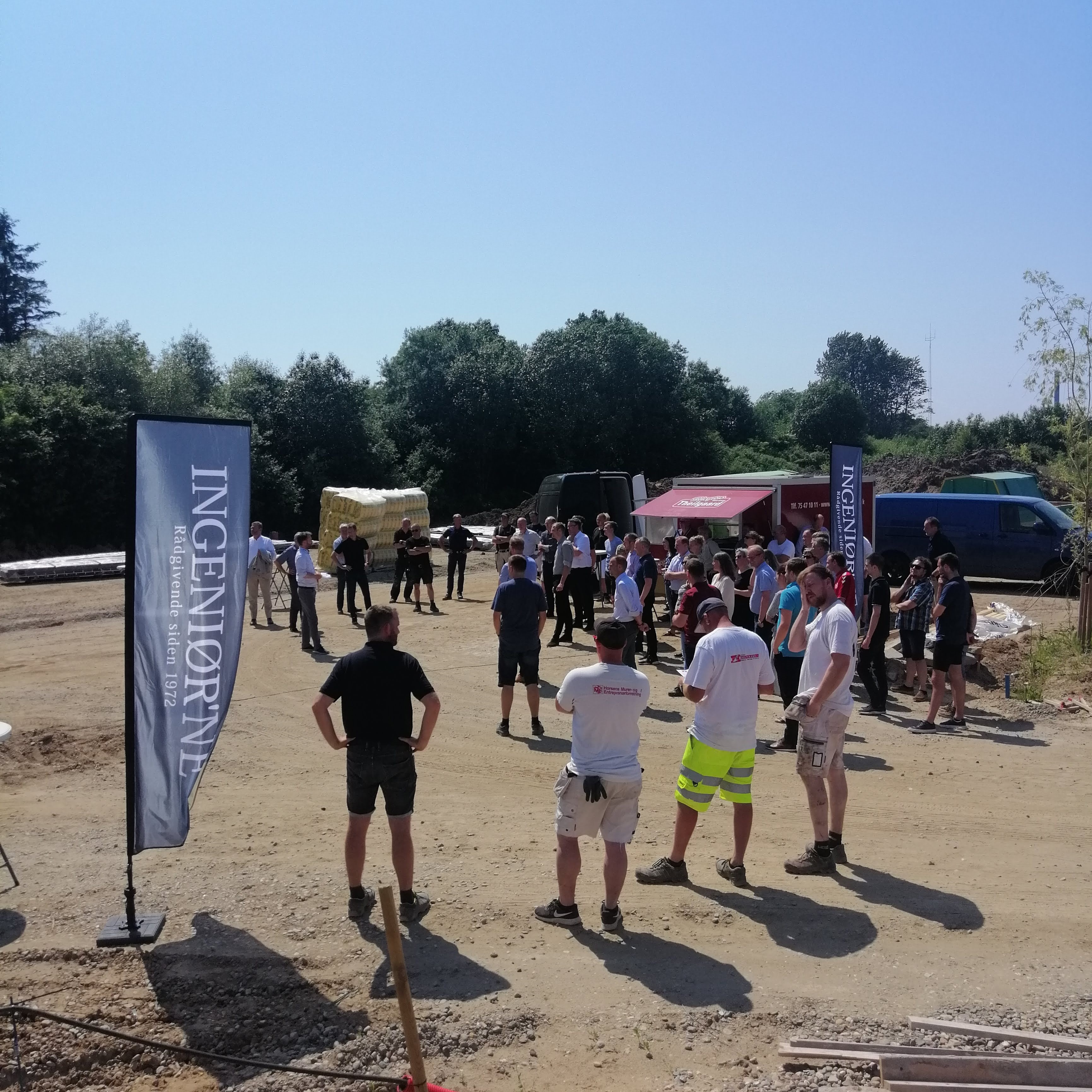 Samarbejdspartnere, kollegaer og ikke mindst sommervejret var mødt frem til rejsegilde torsdag den 17. juni ved INGENIØR’NEs nye kontorhus på Skovvangen i Kolding.
